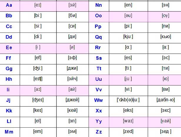 Современный английский алфавит состоит из 26 букв: 6 гласных и 20 согласных.
